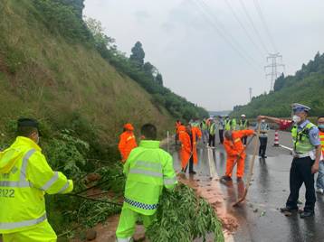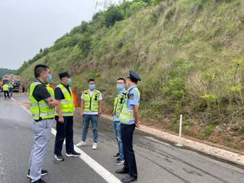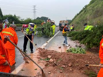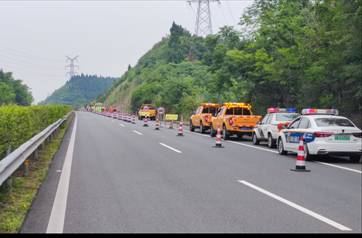 此次演練模擬綿陽繞城高速萬成方向K113+100M處邊坡垮塌、樹木傾倒、落石滾至公路路面,造成交通堵塞。接到報警后,應急救援指揮部立即啟動應急預案,高速交警、交通執(zhí)法、路產(chǎn)維護、高速救援等相關人員迅速集結(jié)趕赴事發(fā)地展開搶險救援。同時執(zhí)行公路斷道告知、實施交通管制、開展清障救援、清理塌方泥石、積極搶通道路、恢復交通等應急措施,快速消除了安全隱患,保障了道路暢通。