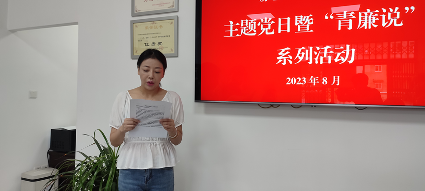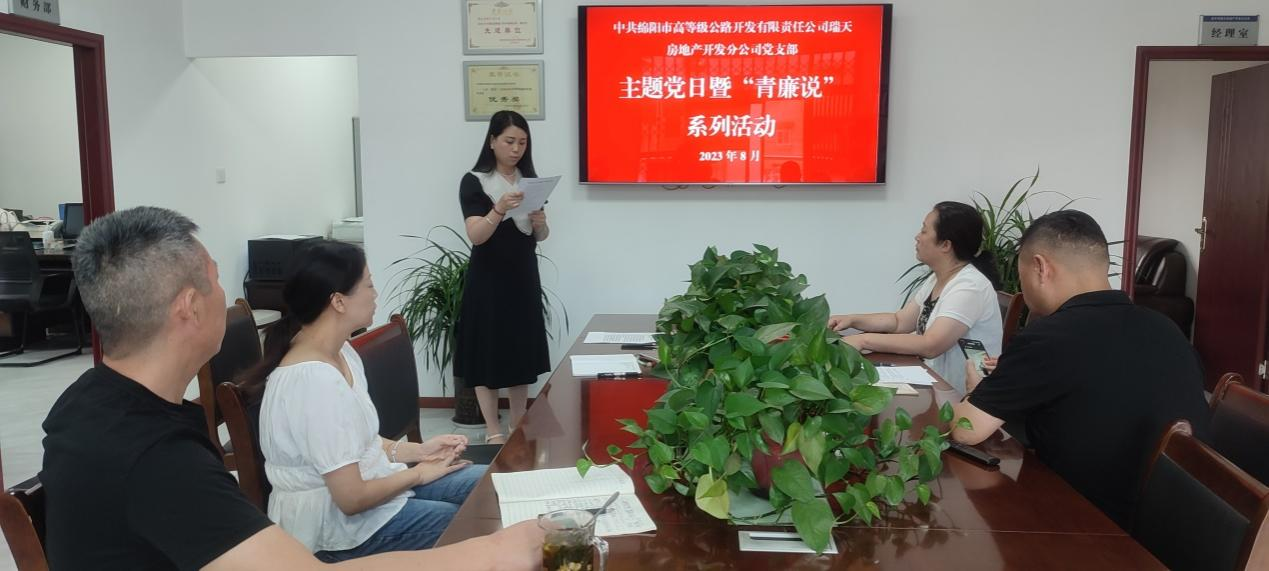 為進(jìn)一步加強(qiáng)黨員廉潔教育,強(qiáng)化紀(jì)律和規(guī)矩意識,8月24日,瑞天房產(chǎn)分公司黨支部組織開展主題黨日暨“青廉說”活動。