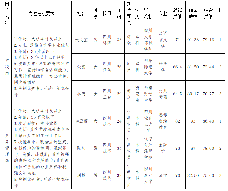 根據(jù)高開(kāi)司發(fā)布的招聘公告及招聘相關(guān)規(guī)定,經(jīng)筆試、面試等程序,現(xiàn)將成績(jī)予以公示。
